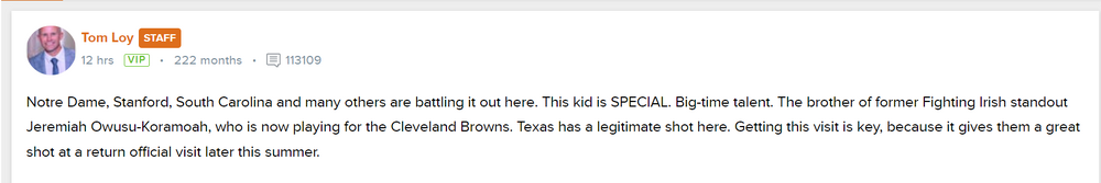 On Shaggy one year, I want to say the JR day for 2010, I named like 17 of the 18 guys that committed within a few weeks, right before that weekend. At that point, some of us were pretty despondent. It wasn't a good thing that that shit was that predictable. Texas was beginning to lose many high end recruits who didn't want the push. On top of that, Texas was narrowing who they would take based on the player's willingness to shut things down. Not surprisingly, a bunch of centex and suburbanite kids were fine with the process. Mack Brown became a bullying, star-chasing, lazy, thin-skinned bitch over a gradual period of time, but he really peaked from 2007-2011 with his recruiting classes being built on a house of sand. Before then, they were good or lucky (2006 class) and after that, the old man stench of death had just settled into the furnishings and facilities in Bellmont.9 points