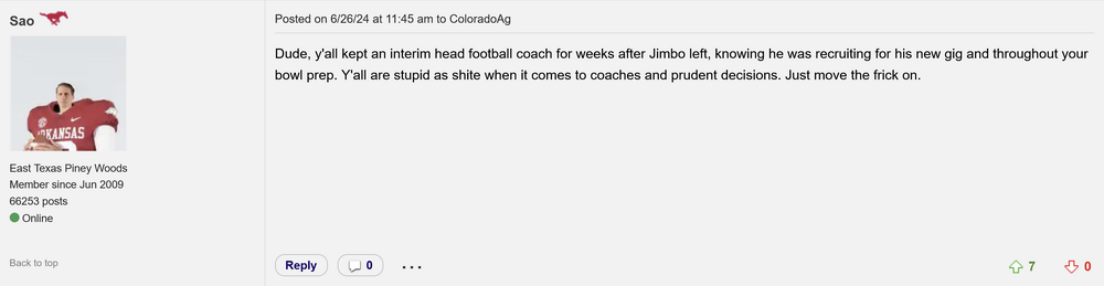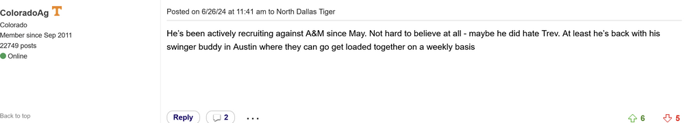 Having followed Texas sports for the better part of 30 years, this is fucking glorious. I don’t care if Schloss is an abject fucking failure here, although I hope, and expect, he will succeed and achieve more than he ever could with little brother. Texas football is finally back up, just as we crash the SEC and restart our rivalry with the Ags. They edge into a college baseball World Series hoping to become relevant in any major sport since the pre-Hitler days, only to lose the whole thing by a run and have their prized coach leave the next day for the evil Longhorns. Absolute fucking poetry. Days like today are glorious, hilarious, and will fuel the rivalry - and “evil Texas” rhetoric - for the next 50 years. Enjoy the aggy tears. They’re particularly salty today.26 points