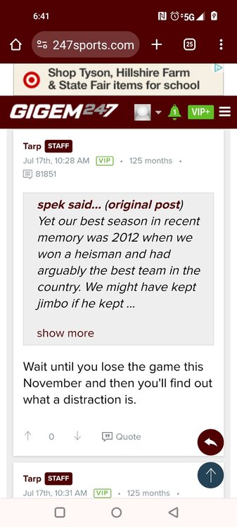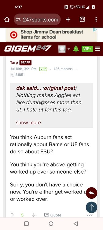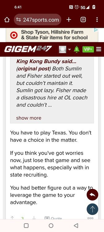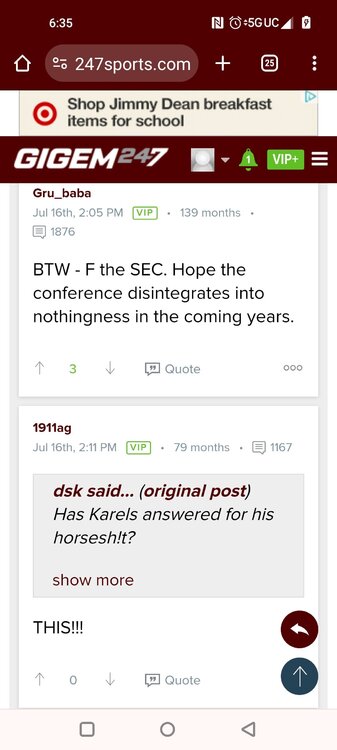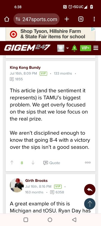 “As the Aggies begin their first season under coach Mike Elko, 15 players remain from the 30-player class that quickly became the Exhibit A for all things evil about the emergence of players earning off their name, image and likeness…” Except aggy didn’t have an NIL program, Matt.8 points