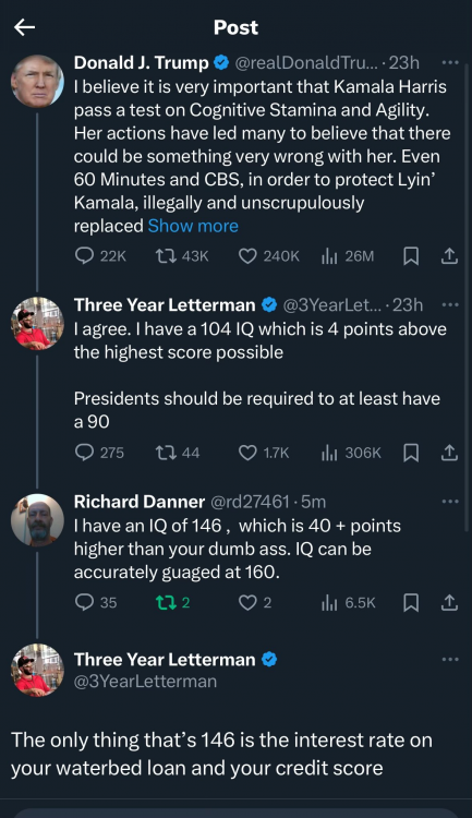 Goddammit Donnie we had finally moved past that fucking idiocy and here you come two days later like a child wandering into the middle of a movie asking what the fuck is going on.12 points