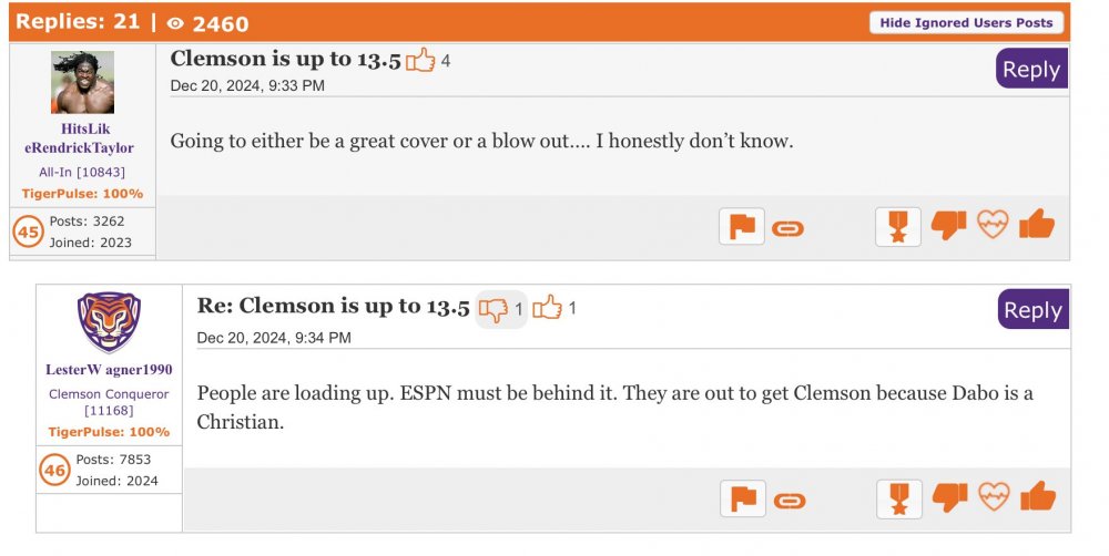 Nice game fuckers. That's an extremely balanced and deep team Texas has. I thought Clemson played hard and made it a good game, but some of Sark's gambles played into that as well. I think y'all did enough to get the dumbfuck defensive coordinator fired, so thank you for that. Go win the damn thing42 points
