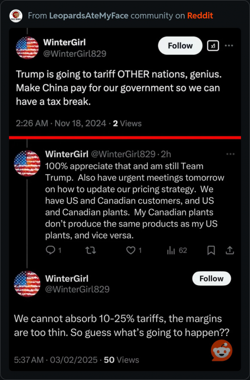 Canada has been about the best friend we have ever had. We've maintained an undefended border with them and haven't had real beef against each other in over 200 years but we just up a fucked it up for what? A little man's ego.13 points