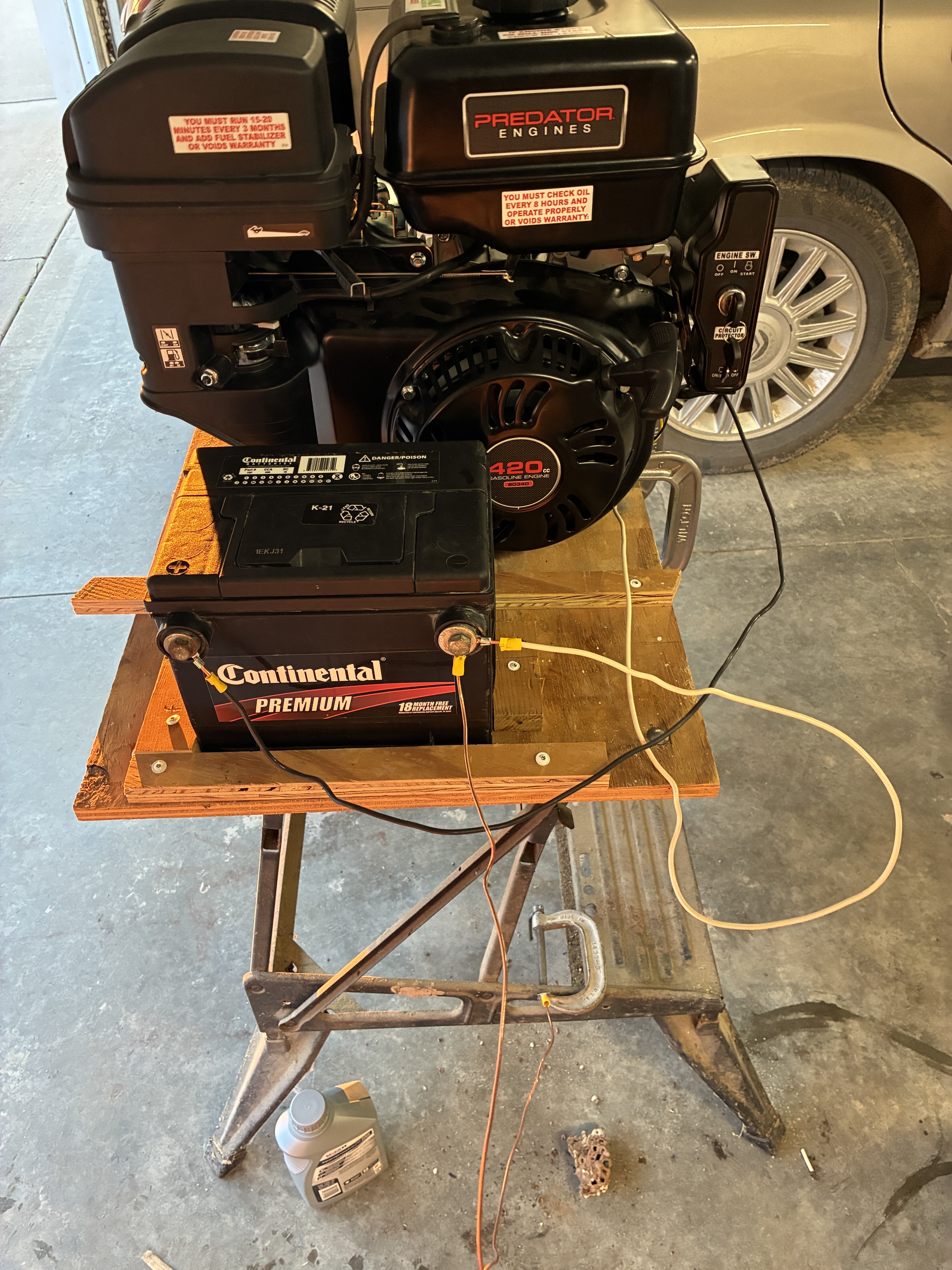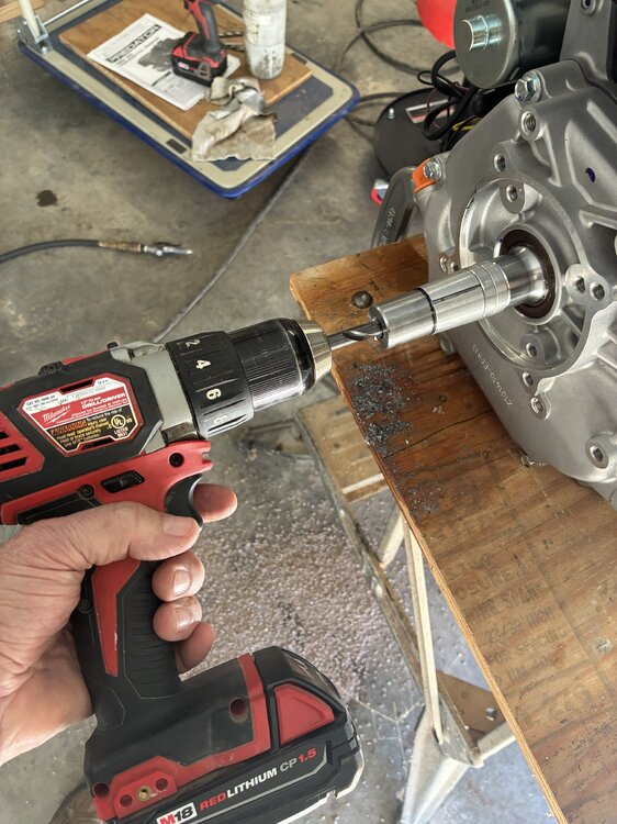 I Put oil in the motor and went thru the break-in routine. I wanted to make sure I didn’t have to return the motor to HF before I altered the crank. I drilled the clutch bolt hole deeper and will saw it to length tomorrow. IMG_3188.mov