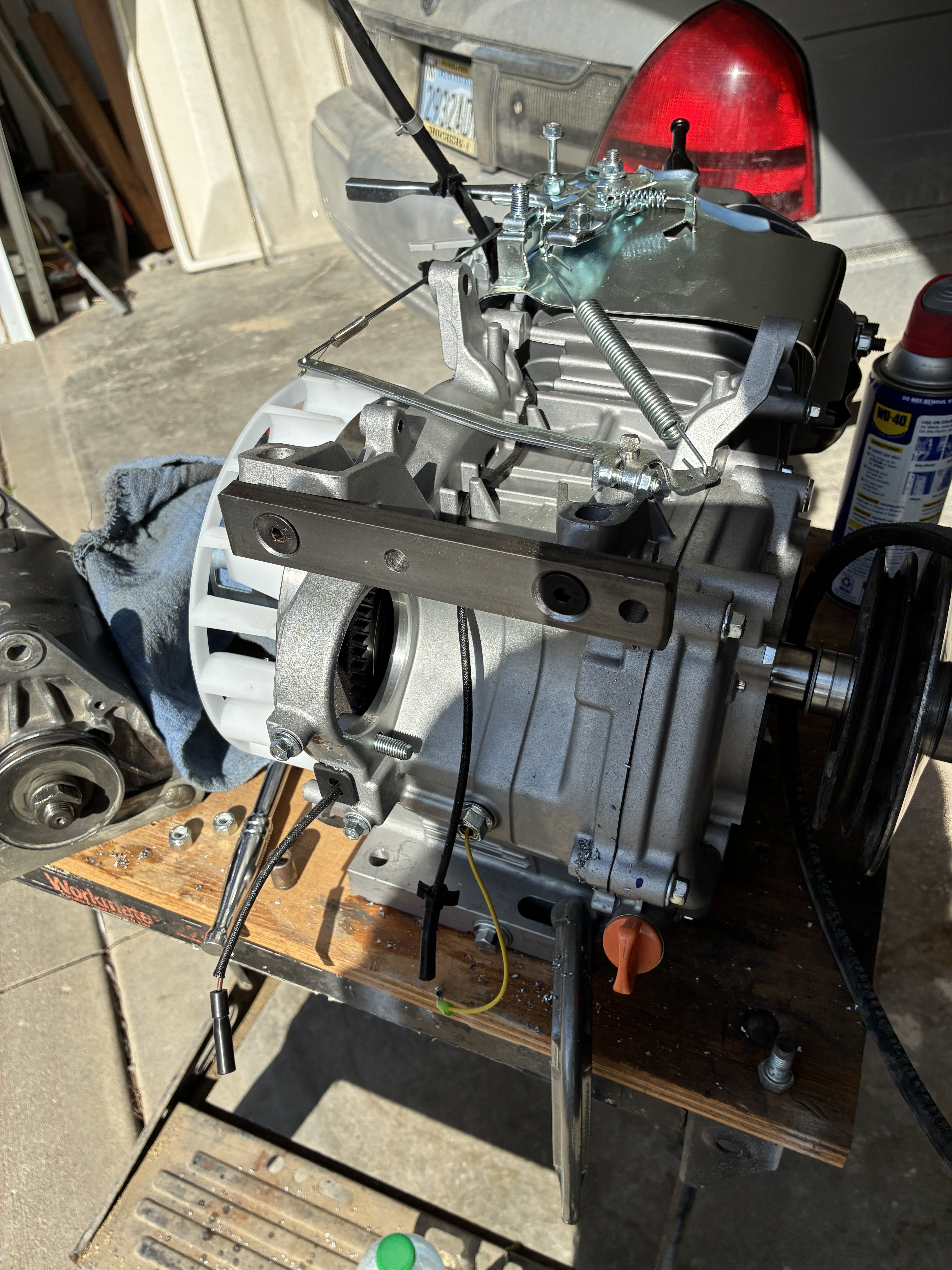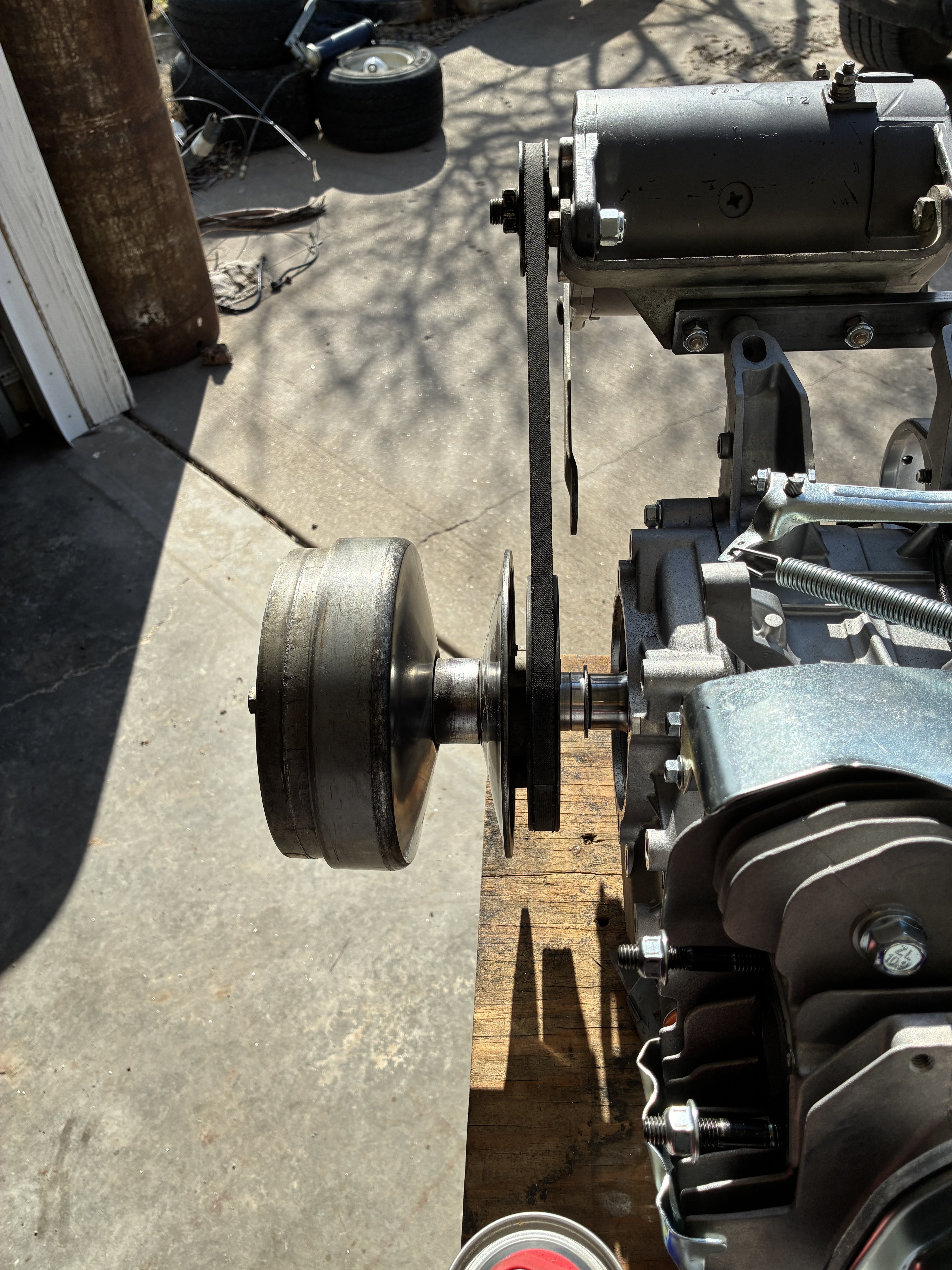 I tried to use my portable bandsaw but it was too bulky and the handles were hitting the case. I gave up and cut it with a whiz wheel in my 4” angle grinder. I tapped the clutch mounting hole 1/2” deeper and replaced the taper adapter. I bolted the clutch to the crank and fired it up. It runs as true as it did on the old motor. Any runout has to be internal to the clutch. IMG_3198.mov I had the starter generator rebuilt, new brushes and the like. Now that I know where the pulley for the clutch lies, I can fab a bracket to hang the s/g inline with it. Getting close to being ready to machine a new engine mount plate.