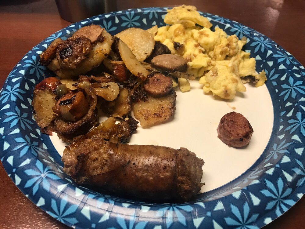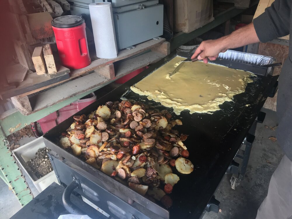 1. We're doing breakfast for the shop guys with the leftovers from yesterday. Pretty fancy kitchen, I know.