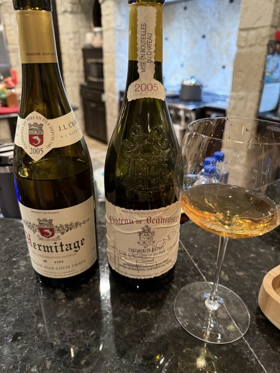 I’m not sure how to put this except the Rousseau exceeded my expectations and was one of the best wines I’ve ever had. The price has always turned me off but I had a special occasion and found a reasonable deal and went for it. I’ll do it again. It was that good. I’ve had a lot of Leflaive but that 2005 was outstanding. Youthful, vibrant, and focused. I have no idea how long that stuff may last, but it had another 10-15 years at least. With that said it might be at its peak. Hell if I know I haven’t had any 30 yr old Leflaives to compare it to. But if you come across one, don’t hesitate. Consistently the best white burgundy made, in my opinion, of course. The Rayas was also sensational. I’ve been fortunate to have had a few of these over the years and there’s never been a bad one. Especially if you’re into the white Rhônes.