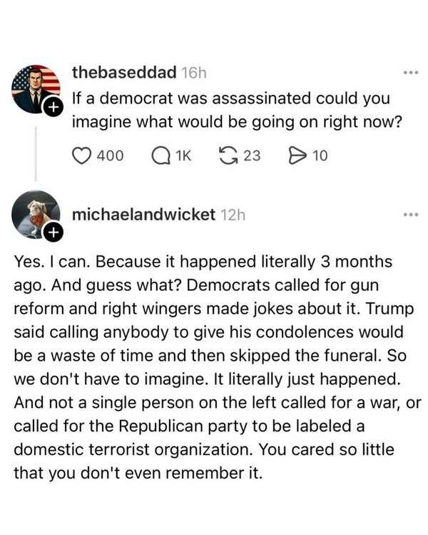 7. He should play a montage of Kirk's greatest hits- we should accept our levels of deaths due to gun violence, blacks are intellectually inferior, etc...- on the Jumbotron if MAGA truly believe he's someone who should be revered.