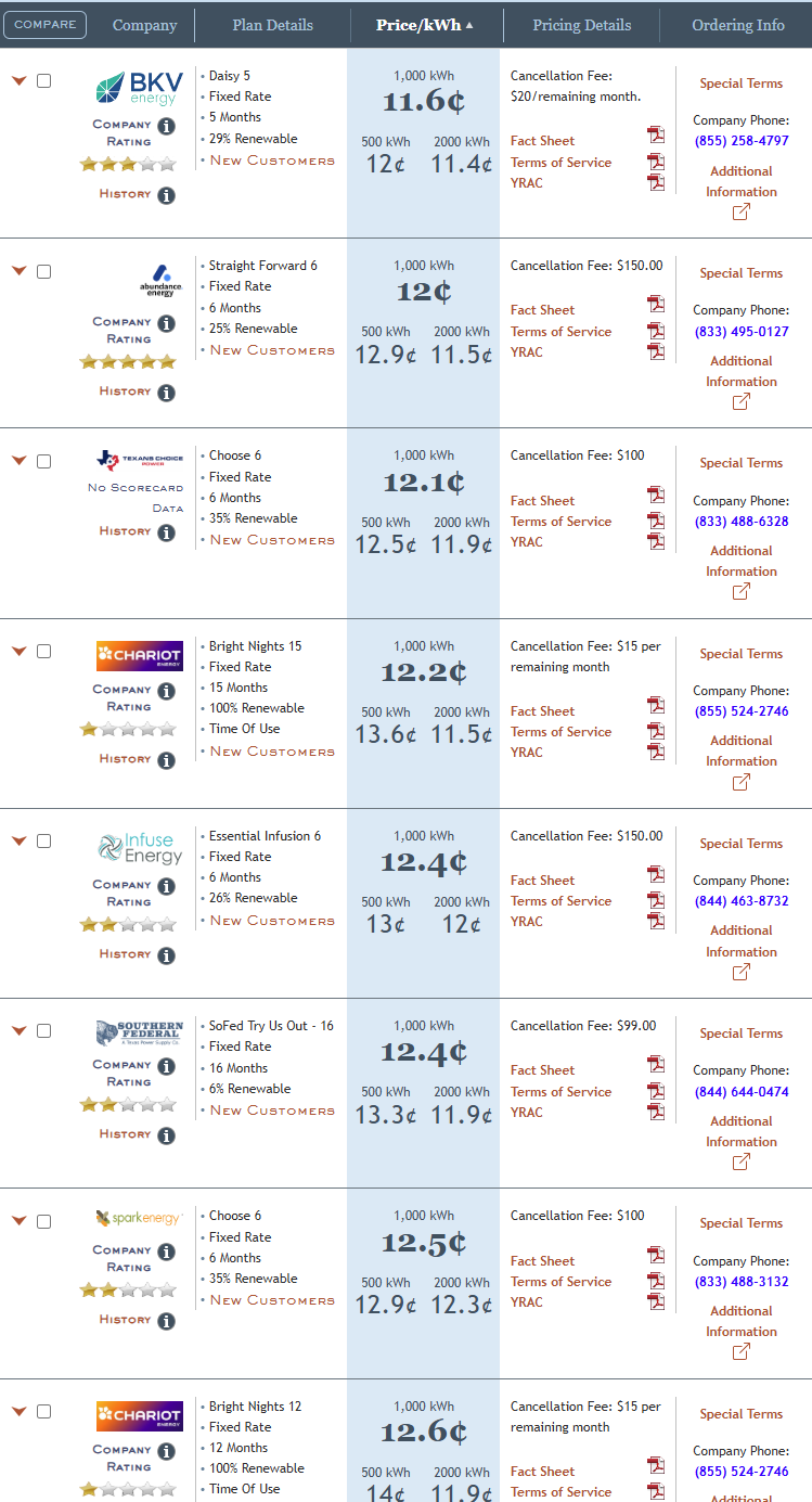 Electricity plans