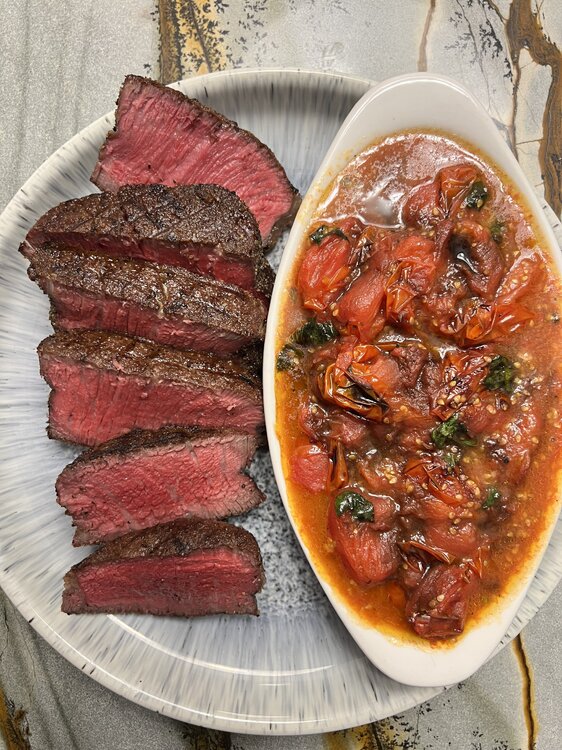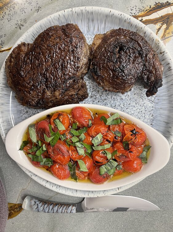 Yes. Super easy. Just get grape tomatoes or any of the sweet varieties they sell at HEB. Put in a baking dish with some olive oil and salt. Roast at 375 until the skins start to burst. Remove from oven. Let cool smash with a fork. Good as is or you can add pepper, basil and or balsamic vinegar. Great on bread and for dipping steak, lamb or pork. Made again the next night with filet instead of ribeye- 2925 replies