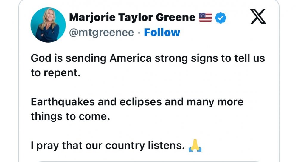 1. Or maybe god is sending all those MAGA areas a strong sign