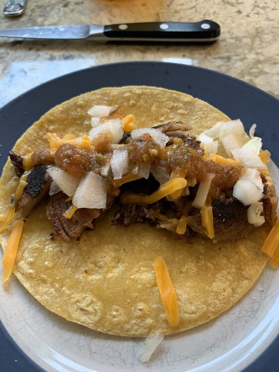 14. Neighbor lady just sent over some carnitas and Barbacoa. Taco time.