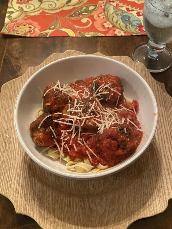 12. Made some homemade marinara, meatballs, and fresh fettuccini.
