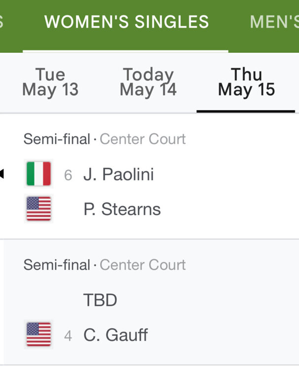 11. Carlitos beat Draper 6-4 , 6-4 I was expecting more out of Draper in a best of 3, especially with how erratic Carlitos has been playing. I think that Draper will have a much more difficult time in Paris playing best of 5 matches because he is such a large guy (though Stan does have a French Open title). Coco beat Mirra in straight sets. 6-4 , 7-6 Tomorrow’s Girls’ Semifinals… Still wait waiting for Sabalenka to play the chinawoman* who won the Olympic Gold Medal 🥇 before Coco’s opponent is known. *May not be the proper nomenclature, Dude.