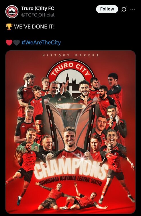 21. Off topic, but England related. Truro City won the National League South to get promoted to the National League which is a first for any team from Cornwall. Lower leagues are so much fun.