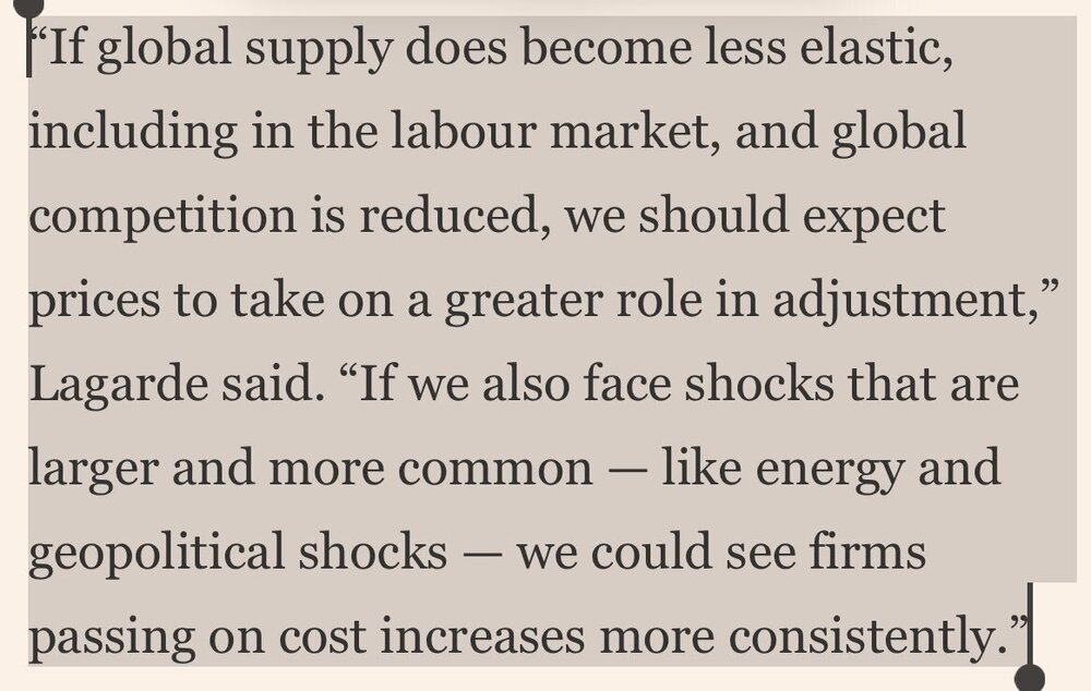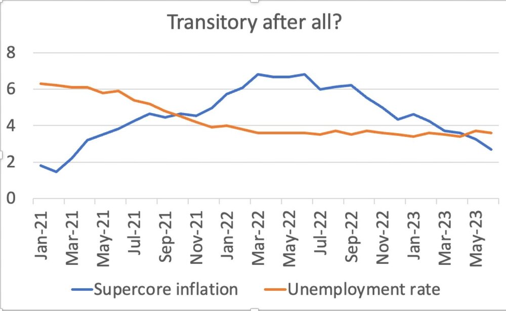 2. An increase in the price of oil causes demand destruction and, paradoxically, is disinflationary overall. ———— Lag effects of rate hikes working their way through economy.