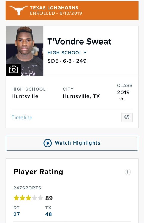 9. I'm pretty sure Sweat was around 260ish as a senior. The whole "grow DTs" came out of a Scipio article on IT from a few days ago. He was talking about taking guys with the frame to add weight and the traits to play DT and using S&C to stack weight on them.
