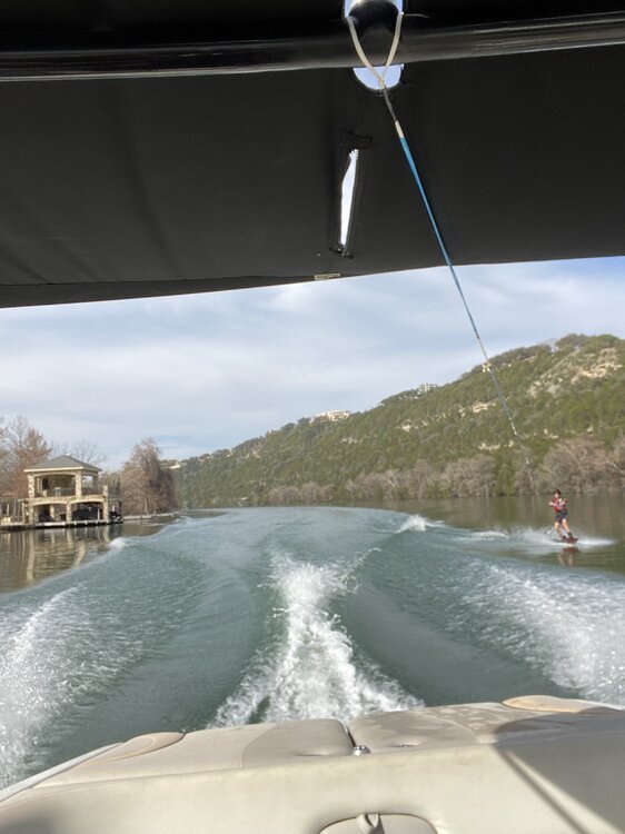 8. we went out today. Lake Austin was glass. Only saw 5 other boats and only 1 guy water skiing, no one boarding or surfing.