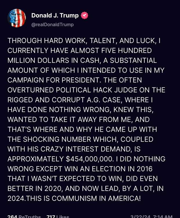 6. Full picture: I don't think admitting that you have the cash helps you in your case to have the bond waived, not that he had much of a chance anyway. Whatever cash he does have is probably for operating expenses and paying the outstanding loans. He can't use that or he'll default, he can't lose a property to seizure because it is the collateral for another loan.