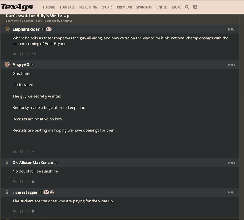 This bigger the shitshow regarding Stoops, it further weakens their hand with whomever they target next. Also, they presumably want to wrap up this search before the transfer deadline and early signing period. So that is going to start working against them pretty soon now. Aggy is far up shit creek in this search and riders are all peddling in different directions. I am here for it.