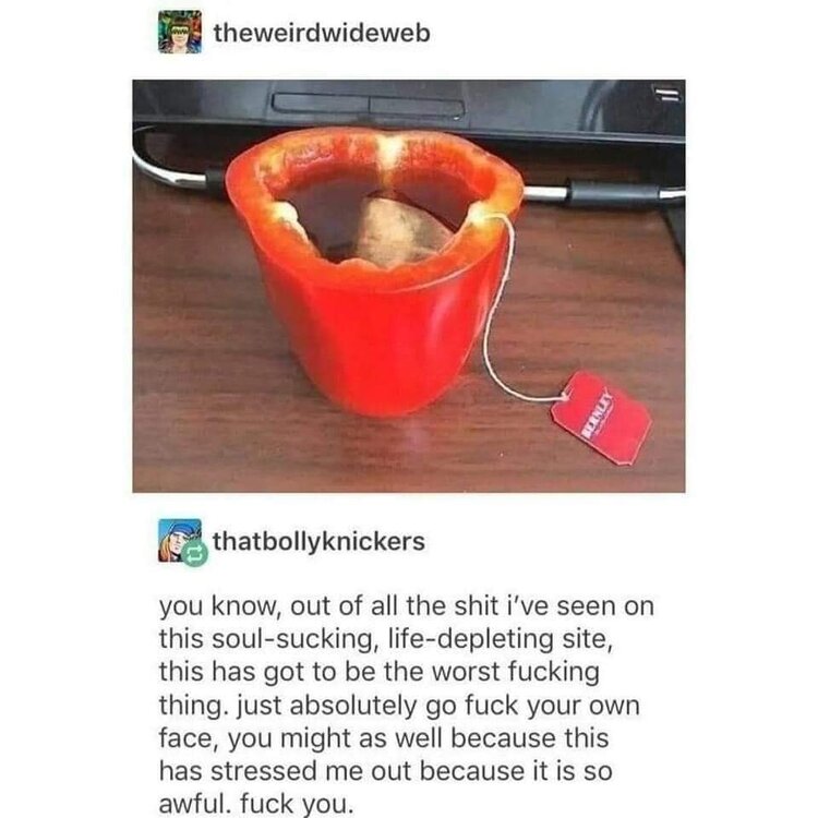 2. Bell pepper full of hot tea. Because life has no meaning.