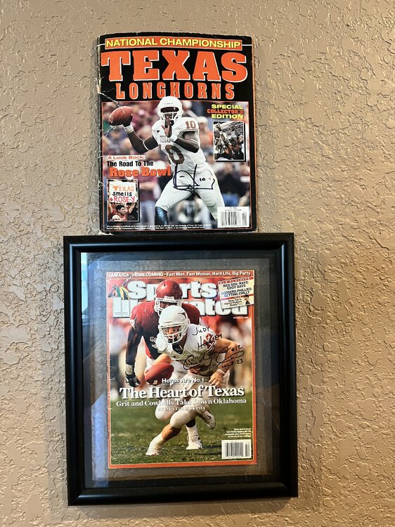It’s ok though, I moved Colt and Vince into the living room to watch the game with me, so we’ve got the juju on our side. (Don’t yell at me for not framing Vince yet, I just got it autographed recently at HEB.)