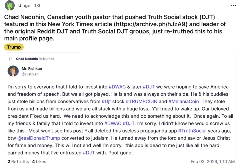 Youth minister. From Canada. Giving investment advice based on belief in turnip. Now he is pushing the idea that turnip converted to Judaism. Holy shit for brains. - Tulsi Gabbard - A Traiterous Piece of Shit and Russian Asset