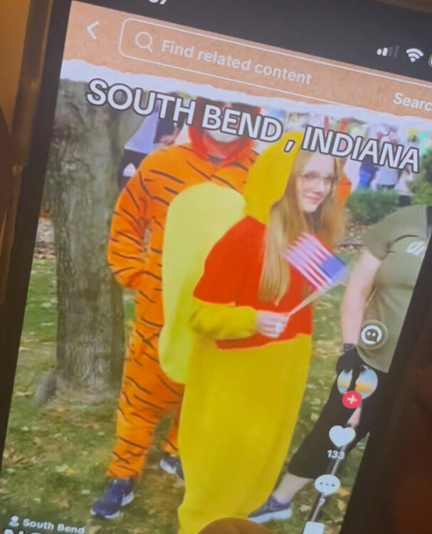 12. Younger brother’s family lives in South Bend, and they were part of the protest there. This evening he came across a photo of he and his daughter on a TikTok montage.