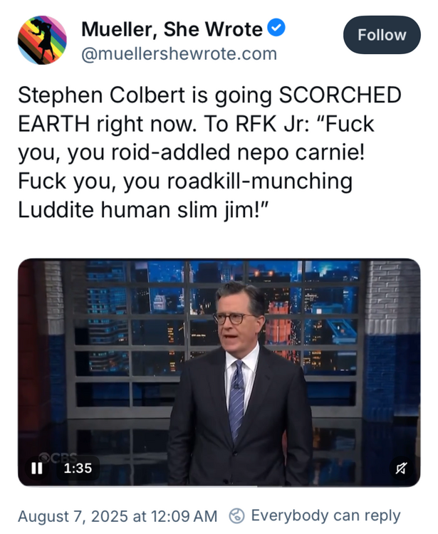 5. Food dye bans? Not if that dye colors food white. Don’t worry, aryan, TiO2 is RFK2 approved. https://www.theatlantic.com/health/archive/2025/08/white-food-dye-titanium-dioxide-maha/683806/?link_source=ta_bluesky_link&taid=6897ac47f074e90001079be0&utm_campaign=the-atlantic&utm_content=edit-promo&utm_medium=social&utm_source=bluesky