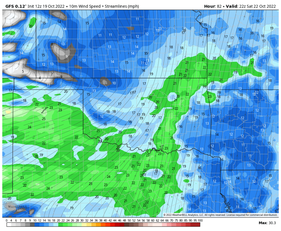 18. The weather for this game looks quite interesting. Skies will be sunny with temperatures likely in the mid-80s. But winds could be a factor with sustained out of the south at 20 mph and gusts of 30-35 mph. (Per usual, OU sucks). This may take away at least some of the deep balls Quinn is able to throw.