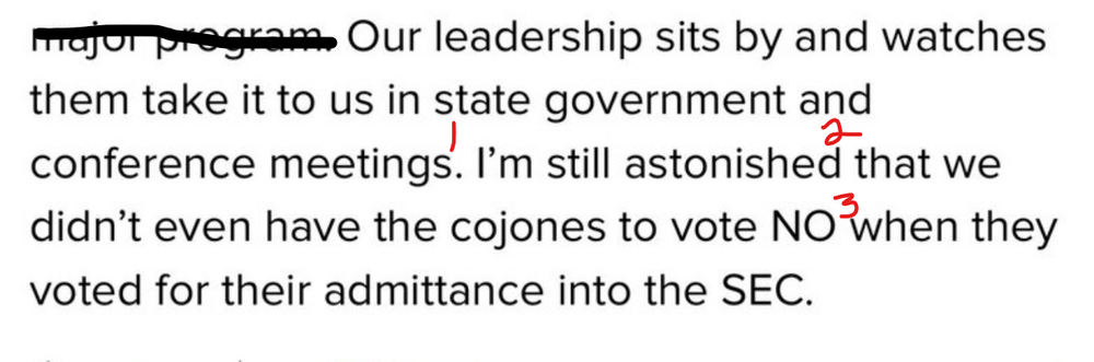 Bless you, @JesusSweatDuck. Just the perfect little excercise to separate the week from the weekend! Brevity, my friend, and lay off the useless, inaccurate qualifiers. And, for God's Sake, active voice!!! 1 It never gets more bare-knuckeled, no-holds-barred, and dirty than someone inviting one to join something and saying yes. Cover the children's eyes? 2 I get the feeling that constant state of astonishment is another Aggie tradition. "You see that? He just started a car by pushing it!!" 3 Compliments on your realization about the void of said attachments. -
