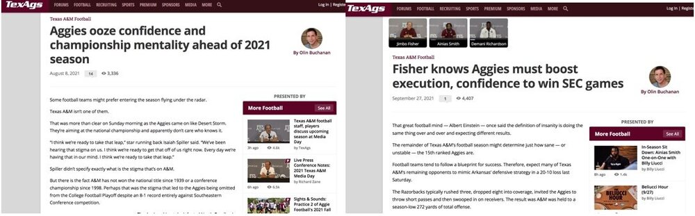 "This was a frustrating loss for the Aggies, but this does look like it's going to be a strange year in College football. I'm still very excited about what Jimbo is building here. The young talent on this roster is big time. One thing you can't rush is experience. There's way too much cliff jumping going on." https://texags.com/forums/5/topics/3231687