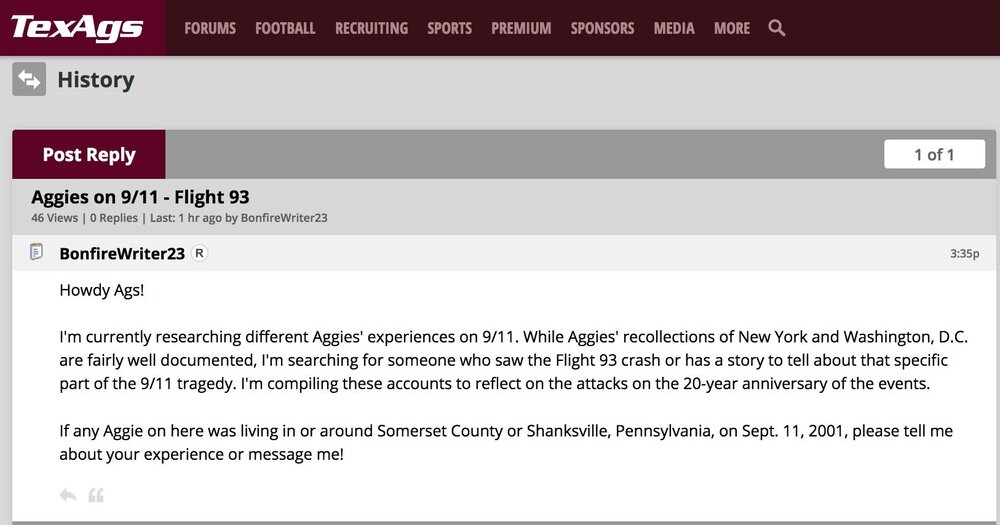 The same sanctimonious aggy sickness that has given us the fairy tale that only aggys fought in WWI (the origination of the term "sip"), and that perpetuated the outright lie that A&M produced more officers during WWII than West Point and Annapolis combined, is now fighting to "prove" only aggs experiences loss on 9/11. Disgusting. Lies of "military service greatness" and No one who truly experienced 9/11 cared then or cares now where anyone affected went to college. After 20 years, only the people who have no clue are soliciting stories from people who truly understand. 9/11 wasn't an experience where many of the affected use giddy, cheerful exclamation points. "aggy" is a sickness. They are desperately trying to create a narrative about how only aggys were truly affected by the events of 9/11. Just as they have done time and time again. They are a sick culture. That they would use the 20th anniversary of what happened as an advertising platform to "prove" they are "better Americans" than any other culture is appalling. It is beyond bad taste. Sadly, it is typically aggy. Roughly as many employees of just one firm (Cantor) died on 9/11 as aggys died in all of WWII. But 9/11 in Farmville will be all about Texas A&M. Not a single thought of those who died. Only consideration of how aggys were affected by watching it all on television. Not a thought of the kids who grew up never knowing a lost parent. Not a single thought of the parents who lost a child; a spouse who lost their partner; a person who lost close friends; or an individual who lost a former co-worker they knew well and cared about. No consideration of how co-workers in the building knew their end was at hand and who chose to hold hands with co-workrs as they jumped to theor death, as opposed to dying in the growing flames. Just a continuous narrative about how aggys were the only people affected by the events of 9/11. "Please, give me your aggy stories! Yay aggy!" The people of Texas deserve better than Texas A&M. America deserves better than Texas A&M. Just remember, 9/11 is all about Texas A&M. Fuck you, aggy.