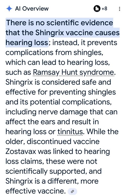 I am not a scientist, but working on the litigation against Zostavax, we naturally compared it to Shingrix. I was in my mid 60s and a perfect candidate for the vaccine, but knowing what I knew about it, I always told my doctors I would not take the Zostavax shingles vaccine. And knowing what I know about Shingrix, I just took it. So don’t rely on me, but do not NOT take it based upon the negative side effects of a completely different vaccine that is no longer given. Shingrix should not affect your hearing Dbeasy. Another case of shingles and your hearing could be worse. Feel free not to take it, but do not refuse taking it for that reason. Science and junk. -