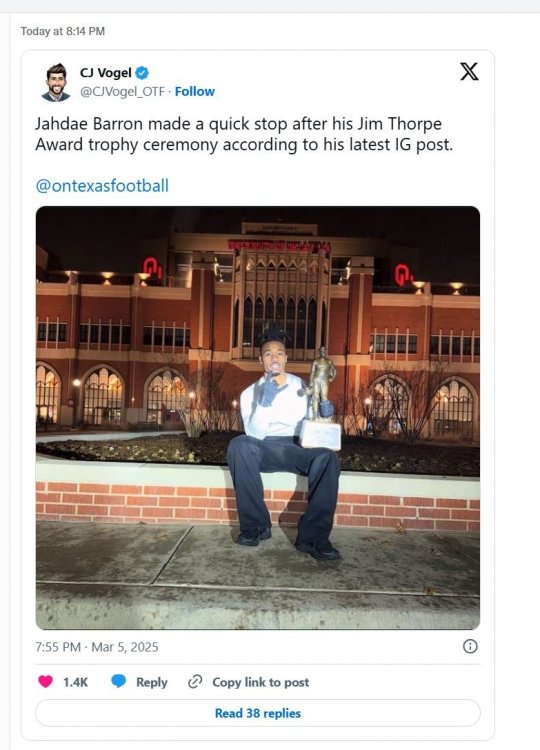 Texas Recruiting Notes 2026: Boulevard of Broken BagmenHornius Emeritus replied to texifornia's topic in 🤫$9.95🤫 Kaydon Finley is a BEAST.