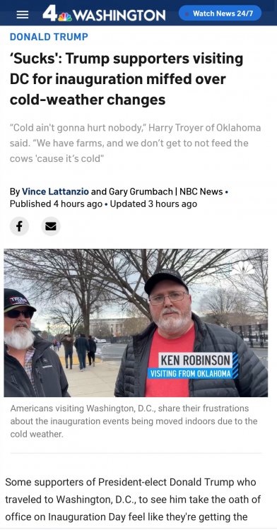 3. Okie farmers bummed when they hear dear leader’s inauguration is moved inside and learn they’ve wasted their money to travel to DC to see nothing. Goatees are bummed out all over DC. Baby, it’s cold outside
