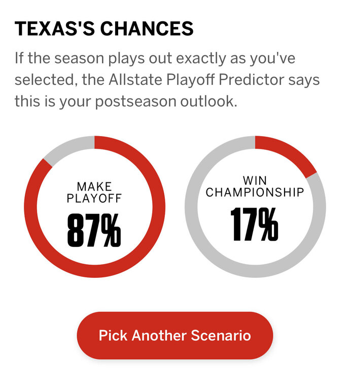 As unlikely as it may seem, there’s still plenty of opportunity for these teams to stumble if we continue to take care of business. I personally am not as confident, but here’s ESPN’s predictor going into this week: