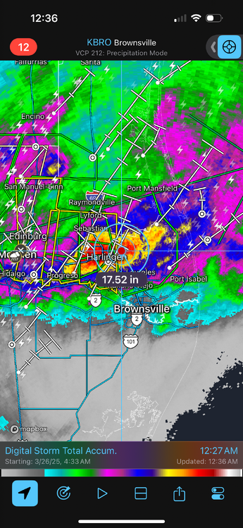 3. Tornado is the least of their worries tonight. Damn, if that apocalyptic shit down there had made it up to the Hill Country somehow, it might have put a huge dent in this drought. Oh well, not gonna complain about rain…you Austin guys got fucked though. Seeing 48 hr totals maxing out at 17+ inches of rainfall just north of Harlingen. Will easily break 20 inches. Makes our little 1-3” event in Comal Co seem like a joke.