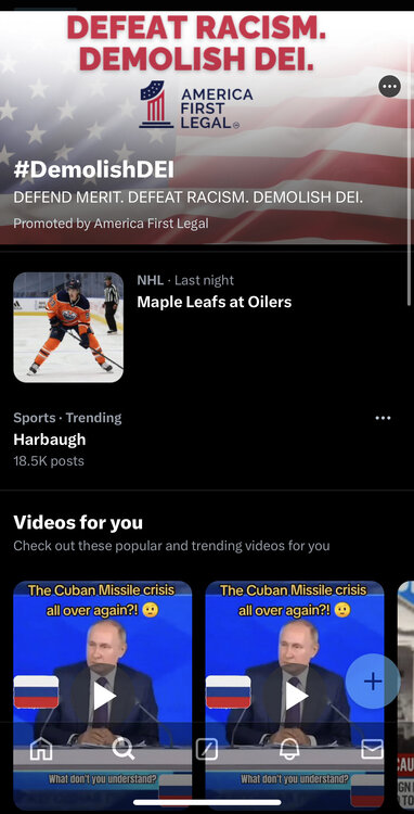 7. This is what I saw checking Twitter this morning. Totally normal. No idea why Putin videos would be recommended for me, my Twitter is 99% sports.