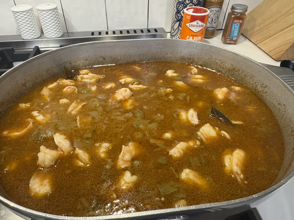 Today's cold front allowed for one last gumbo of the season. I went with shrimp and andouille, came out pretty good. I  go heavy on the file, btw.