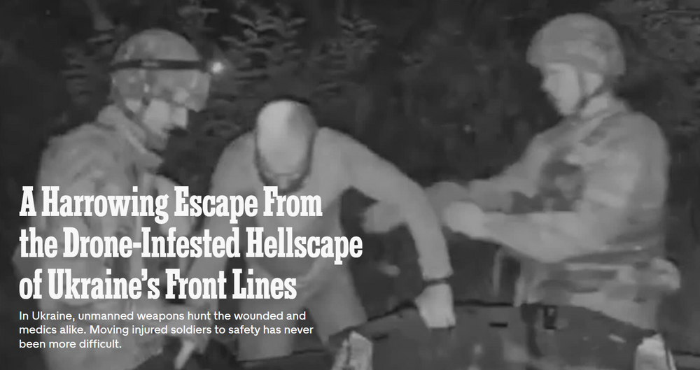 Aleksandr heard the whine of an approaching Russian drone. A Ukrainian infantryman on a four-soldier foot patrol, he was picking his way at 2 a.m. through the waist-high vegetation of an August meadow. A high-pitched whir rose in the moonless quiet. An armed multicopter had detected them and was maneuvering to attack. Now luck would influence fates. The soldiers were on a mission to string wire across the forlorn emptiness between opposing trench lines, creating obstacles to entangle Russian infantry and strip invaders on motocross bikes from their seats. Weighed down by equipment, they were caught in the open and exposed. The nearest hint of protection — the woodlot they stepped out from minutes before — was about 300 yards back. Both Russia and Ukraine operate remotely piloted mini-aircraft that watch over the battlefield with cameras and pursue targets on sight. Some drop bomblets. Others sweep low with explosive charges to strike quarry kamikaze-style. All fly more than twice the speed that even a fit soldier can sprint, a disparity ensuring that many engagements end in one-sided agonies and video-recorded gore. In this new form of warfare, chance still plays a role. When multiple soldiers appear together, most drones cannot strike them all. A pilot must decide: This man? That one? The fleeing soldier who tripped, becoming an easy kill? Or the pair running together who might be felled two at once? The pilot chose Aleksandr, a silhouette holding a rifle in tall grass. The drone stopped above him and released a small explosive munition. After a brief free fall, it landed beside him on dirt. Light flashed in Aleksandr’s eyes, accompanied by a blast that threw him down. His luck was bad: Shrapnel tore through him; pain flared in his left leg. His luck was good: The drone did not linger for the finish. It darted away, chasing his peers as they bounded for trees. Bleeding, pressed to soil, he heard more explosions, off in the direction from where he had come. Quiet settled over the field. Gift link. Long read (28 minutes) but well worth it: https://www.nytimes.com/2025/11/05/magazine/ukraine-russia-war-drones.html?unlocked_article_code=1.y08.O2KZ.yGOvMOdt95zB&smid=url-share