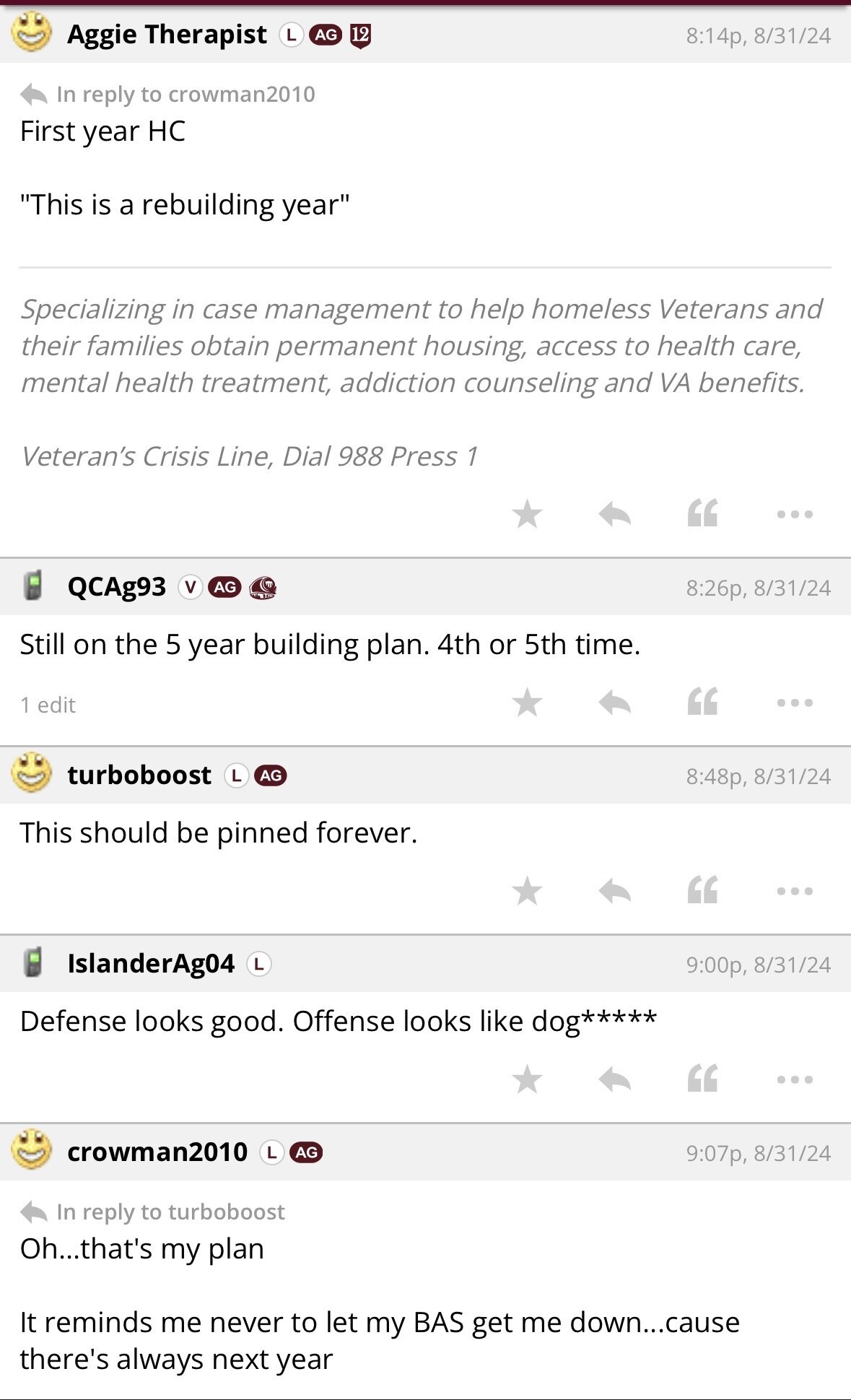 Football ... Basketball ... Baseball ... Other Sports ... Futbol ... 🤫995🤫 ... Gambling ... Movies & TV ... Music ... Hobbies ... Lulz ... Food & Travel ... Daily Texan ... Business and Markets ... Cloak Room ... Help ... For Sale ... Board Discussion ... Subscribe!... Donate!... COOKIE MONSTER!