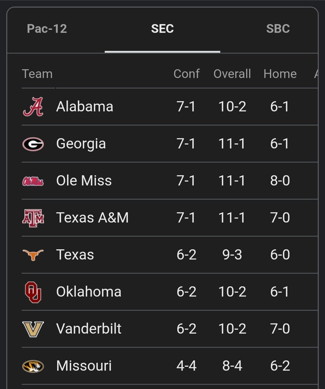 Those who don't like Texas like to point out that if we didn't have the Florida loss, we would be in and that the OOC loss to tOSU doesn't matter. Guess what, every team with 2 or fewer losses in the SEC is a shoe in except us because our 3rd loss is to #1 tOSU on the road at the beginning of the season. We also have 3 top 10 wins. -