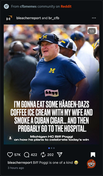 Sometimes shit is too much to cover up. I wish I had that gif someone made of our track coach in the automated wheel chair but I cannot find it. Thought I had saved it. This is a stunning collapse. Are we going to have an orange and white scrimmage for a cheez it bowl? Holy shit.