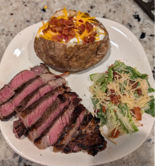 My family doesn't like rib roasts, so when they're on sale this time of year I buy them, break them down, and save the steaks for when I'm eating solo. Simple sous vide and sear. Turned out really nice. -