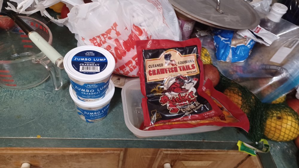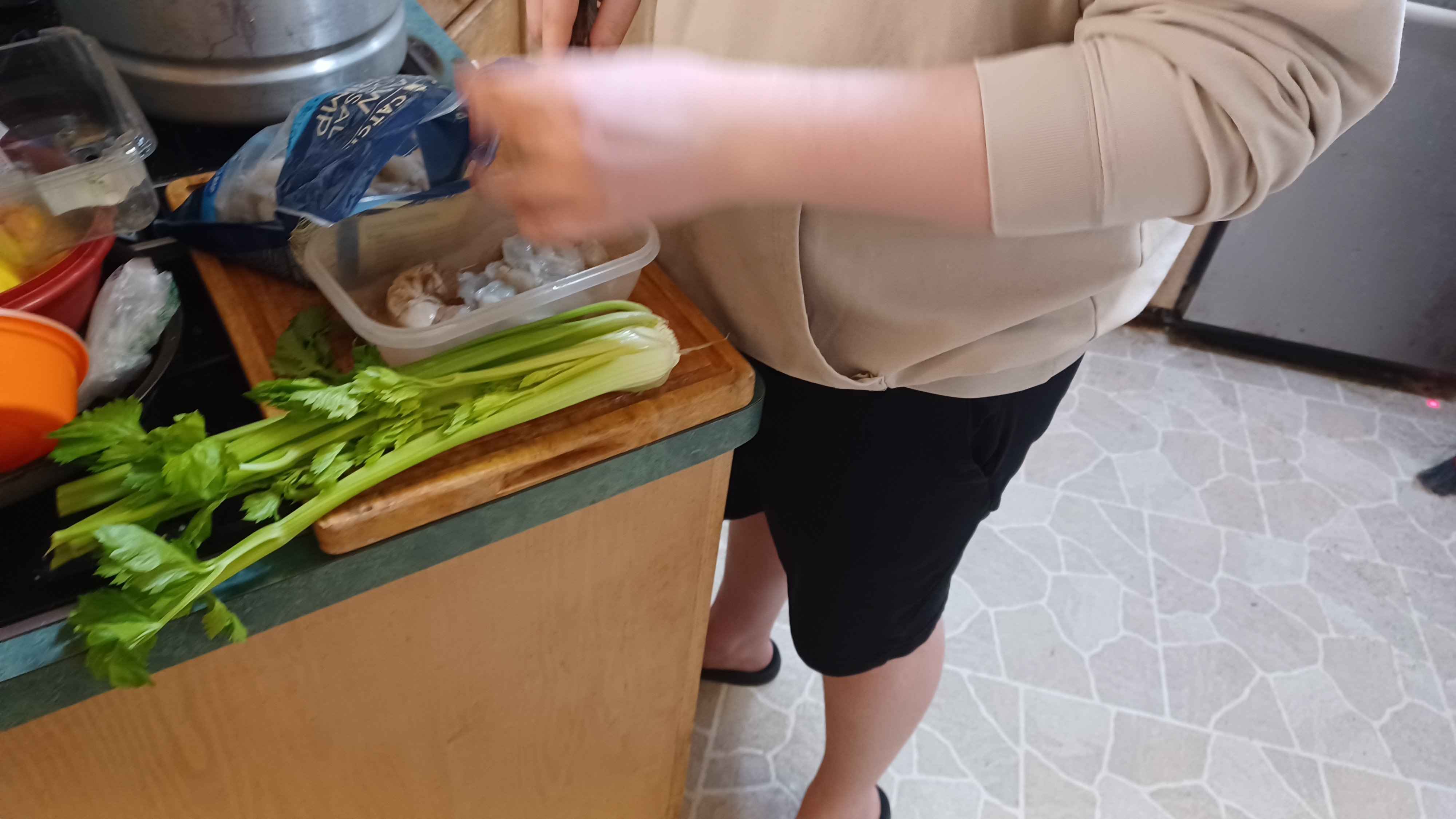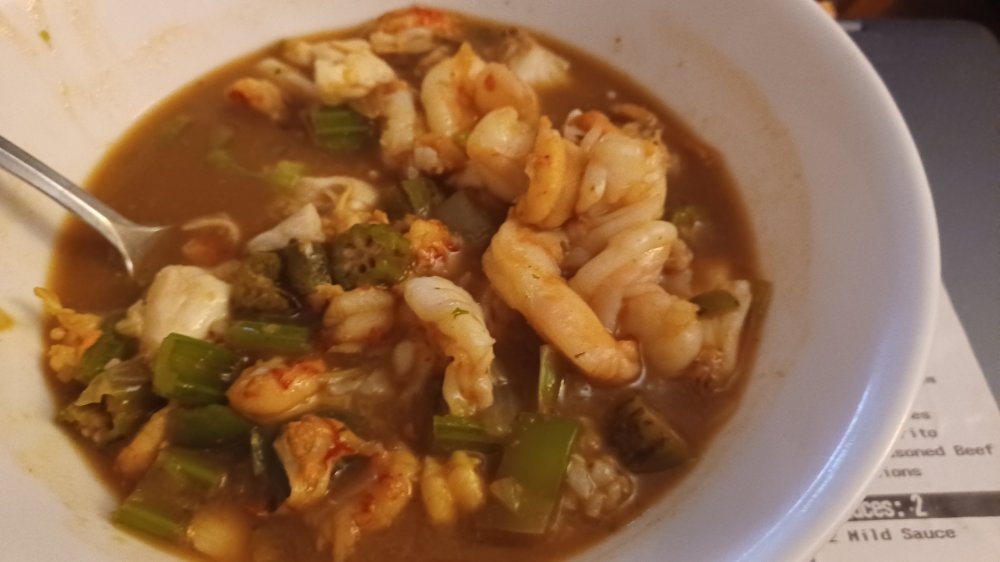 Barely felt cold enough for Gumbo. We typically do seafood on Xmas eve. My Mom bought the fixin's. Monster cutting up the onion &stirring up the roux. Learning him the ways. & Again, I will easily admit to using a "just add water" roux mix. Copy / pasta on the shopping list I sent to my wife. ▪︎▪︎ Produce ▪︎▪︎ ● (2) Green Bell Pepper (2) Sweet onion (Cut into big enough pieces so "onion or bell pepper adverse can easily see & avoid if desired). ,▪︎▪︎ Leave around 5% of bell pepper seeds. ● (1) bunch of Celery Stalks. Rinse & cut into ⅓" sections. ● (1) tub of fresh Okra (in clear plastic packaging) Usually on an island in produce. Cut into ⅓ sections. Entire plastic tub for very slimy, ½ tub for "regular" slimy. ▪︎▪︎ Dry goods ▪︎▪︎ White rice, lowest cost. Do *NOT* get "Minute Rice". Cook & refrigerate for reduced starch/ carbs / sugars, eeheat later.. **Sticky white is better than brown. ▪︎▪︎ Seafood ▪︎▪︎ ● (2) "Louisiana" brand Gumbo base, in a pouch. Directly across from seafood counter in most stores. ● (1 lb) raw COLASSAL fresh shrimp. Optional frozen peeled / deceived / tail off shrimp, 10-15 per lb. *get (2) lbs. for Xtra meaty. ● (2) cooked / picked crab claw meat, 8 Oz. ● (1 ~ 2) short Shucked Oysters, behind seafood counter, on ice. ● (1) Mudbug tail Meat, 1 lb. *get 2 if you want extra meaty Gumbo • Oysters semi frozen, easier to cut in ½. ▪︎ shrimp se.i-frozen, easier to peel & de-vein. peeling, put back in freezer for 30 minutes. Then cut in ½ head to tail. Roux thick enough but not too watery. I remove ½ cup of water from package instructions for thicker. Keep scraping bottom of pot to prevent clumping. ● Let base / roux come to boil, cover & then drop to ⅓ heat to a simmer, stir / scrape every 5 minutes. Minimum 45 minutes @ simmer & occasionally taste for celery & bell pepper softness. ● Add seafood maybe 8 minutes before "totally" done, oysters take the longest to actually cook however raw is usually OK Don't over-cook bugs or shrimp, crab is R T E. out of the tub... you're mostly re-heating. ★★ Do NOT add salt or pepper. Add hot sauce as desired. *Tobasco or Texas Pete's. ● Serve with Saltines or white rice. Should serve +8 if pre-made instructions on roux base is observed.