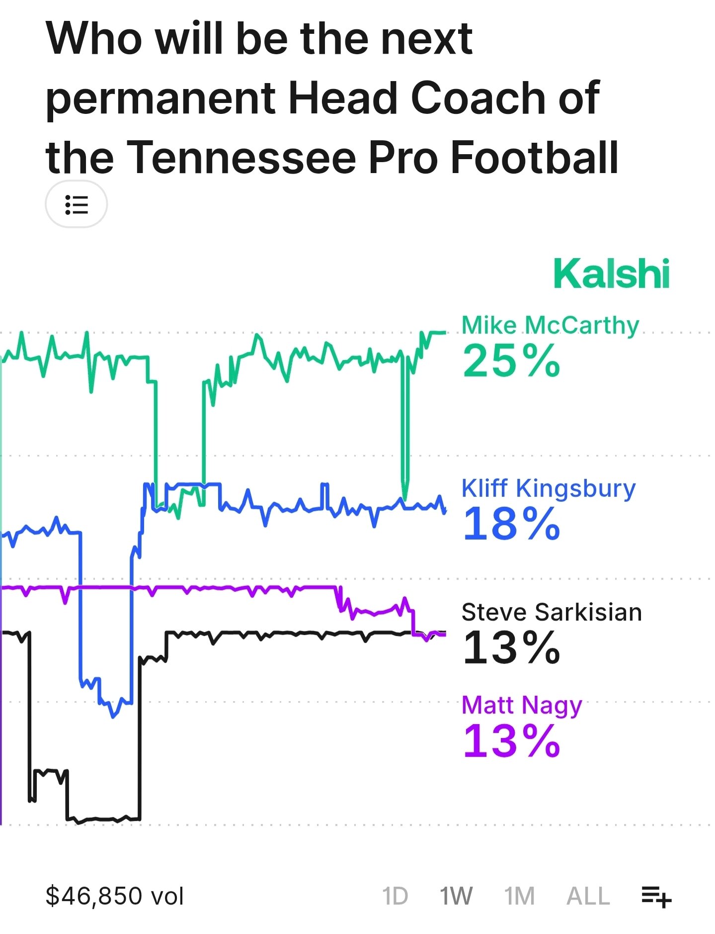 Just something to keep an eye on Sark jumped to 13% and 3rd in odds to be the Titans next coach last Tuesday and has stayed around there.