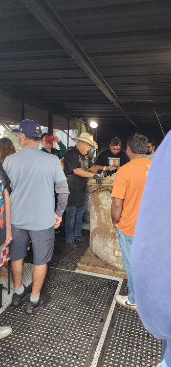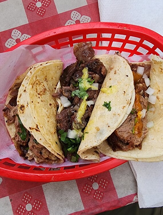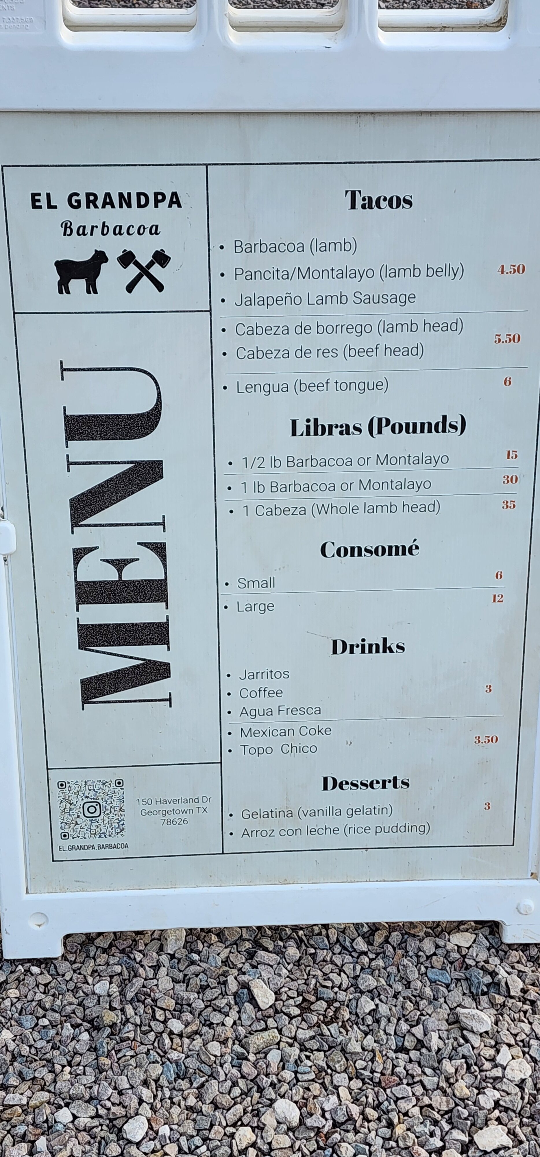 Hit El Grandpa Mexican Barbacoa again this morning. If you get there when they open at 8, you're invited into the trailer to witness the unloading of the pit. And get a lamb barbacoa taco. Placed the order first when the guy was running out to get the fresh corn tortillas. One lamb barbacoa, one cabeza de res, and one lengua. This place is really cool if you like simple food, cooked traditionally without any trace of ostentation.
