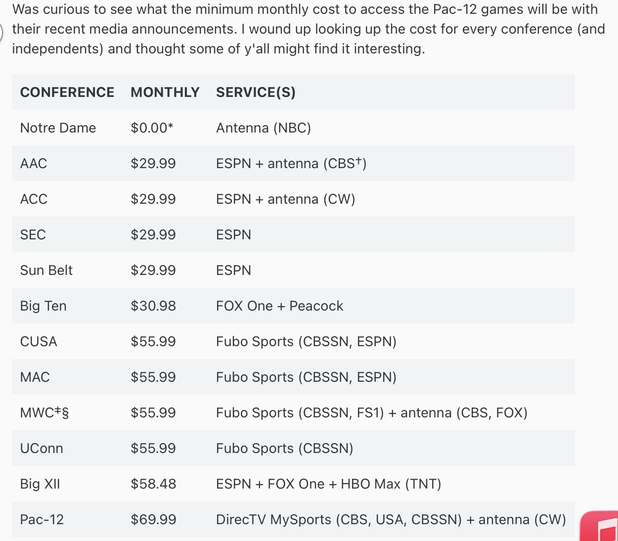 Someone from r/cfb compiled this I had yttv for the past couple months but outside of cfb and the MLB playoffs/world series I never watched a thing. Corporate news is complete garbage and I haven't regularly watched it for 20 years. It makes viewer dumber. I don't know what hulu live costs these days but I think I get a $30/month subsidy through amex. Maybe I'll sign up for that on Saturday.