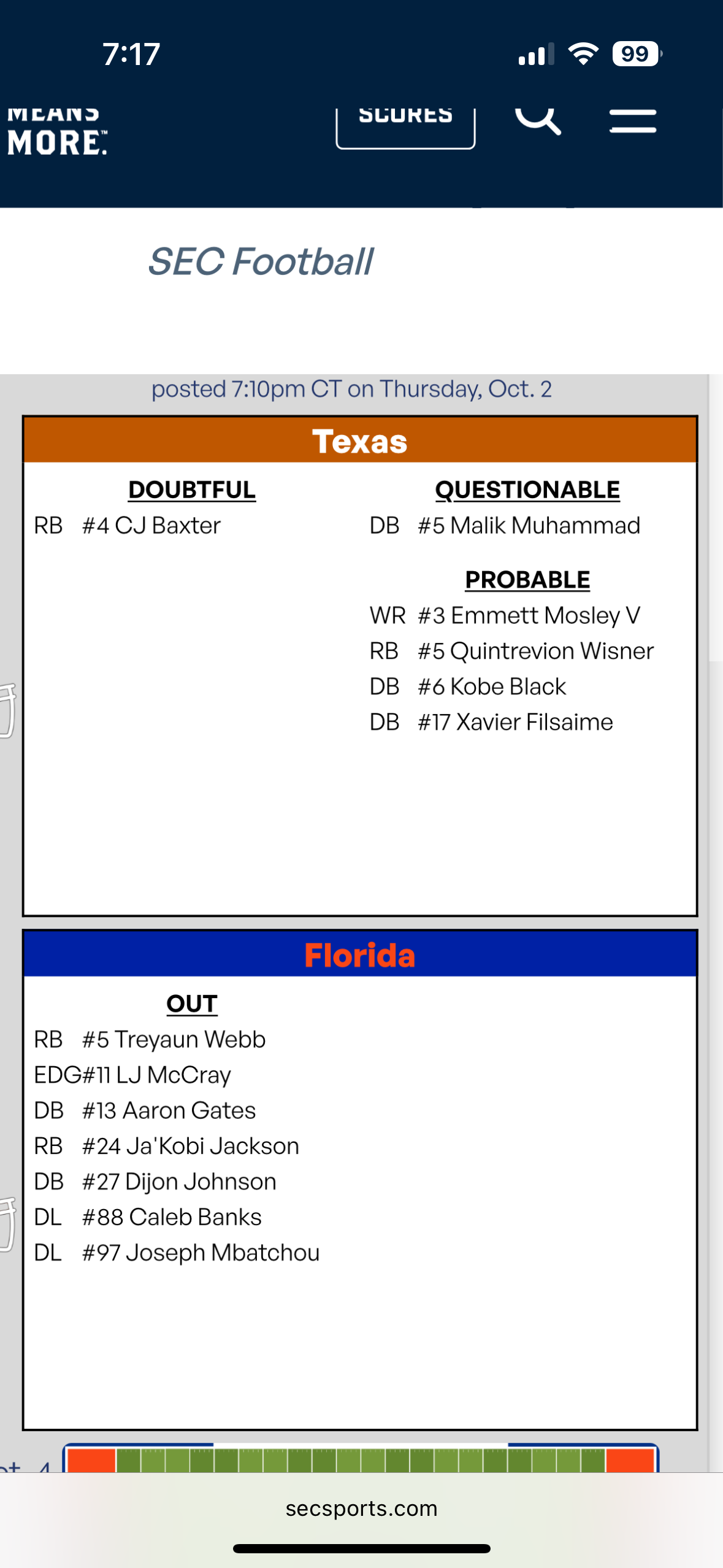 Game Week Thread 2025 Game Week 5: Texas at Florida