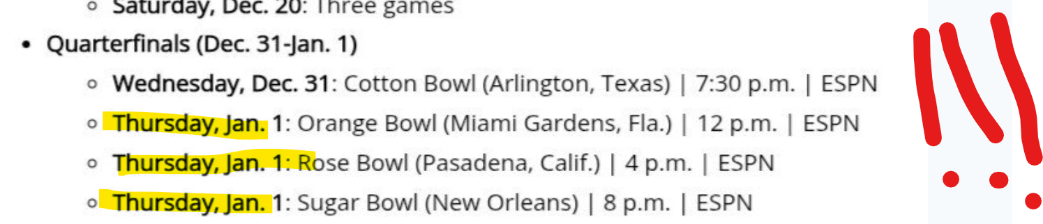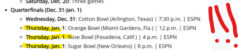I had no idea that they'd revived Jan. 1 as a spectacular college football day. A million years ago it was so fun following the games to figure out who would win the MNC. ETA: I read years ago that the bowl games would be so much better attended if they were held on one of the team's campuses. The lesser bowls are scams where teams accepting the invitations must guarantee ticket sales. The suggestion was to offer half the tickets in the home stadium to the visiting fans to lessen the home field advantage. The empty stadiums for bowl games makes it feel like they're playing in a mausoleum.